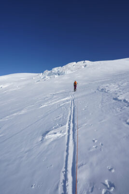 • Da die Tour eher südseitig ausgerichtet ist, kann es Passagen mit sehr hartem Schnee haben