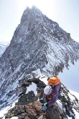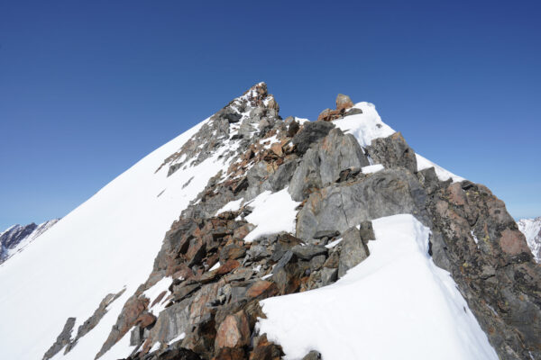 Am Gipfelgrat mit dem eindrücklichen Finsteraarhorn im Hintergrund