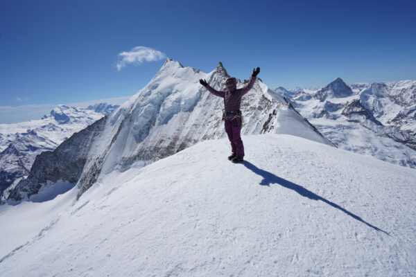 Am Gipfel des Bishorns mit Blick auf die eindrückliche Nordflanke des Weisshorns
